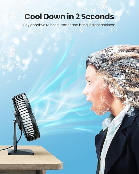 Stay cool and comfortable with the Gaiatop USB Desk Fan, designed for powerful and ultra-quiet performance. With a 6.5-inch compact design and 4 adjustable speeds, this portable mini fan delivers strong airflow while maintaining minimal noise — perfect for your home, office, or study table.